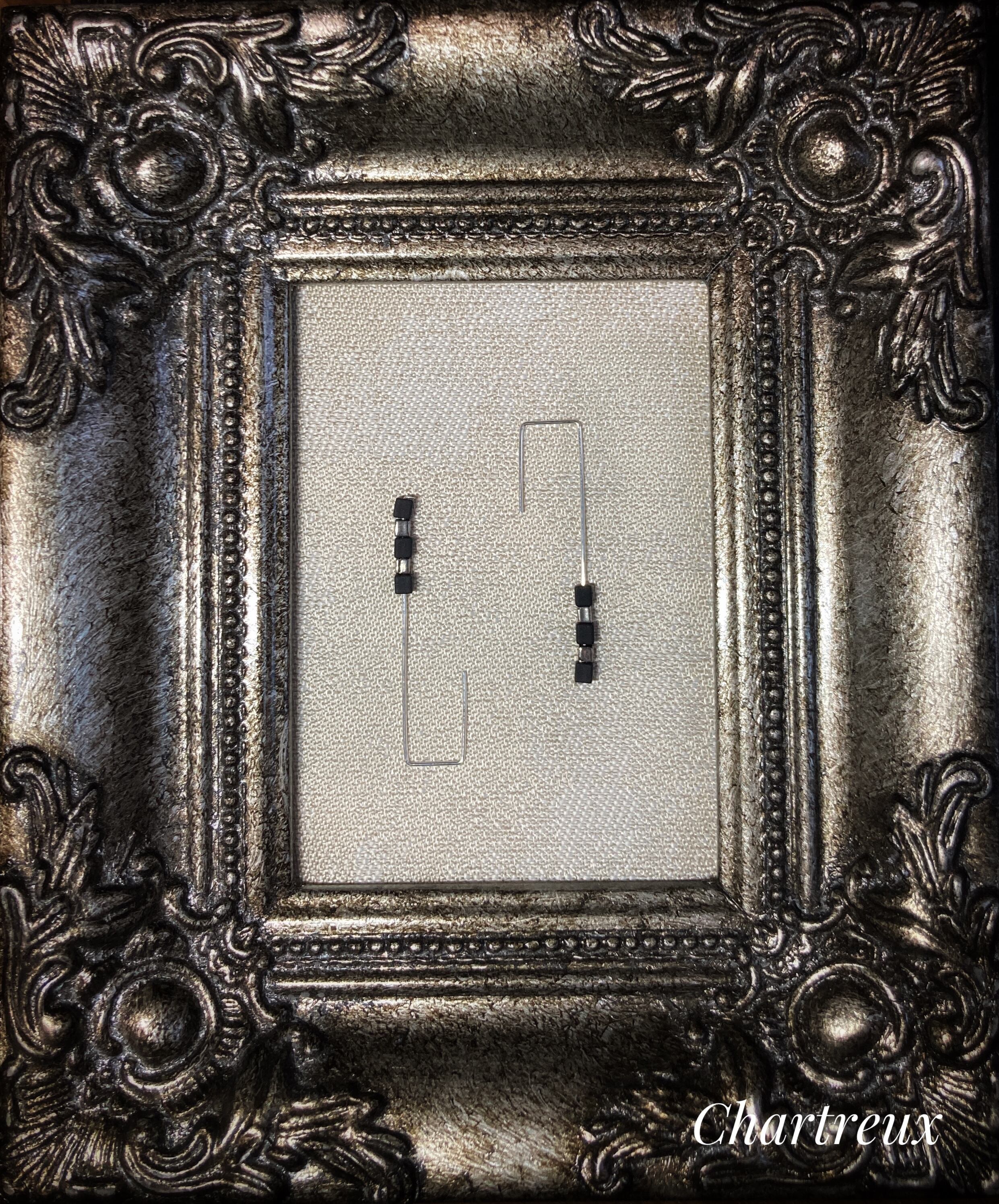 キューブ型のオニキスとシルバーを組合せたデザインのピアスです。